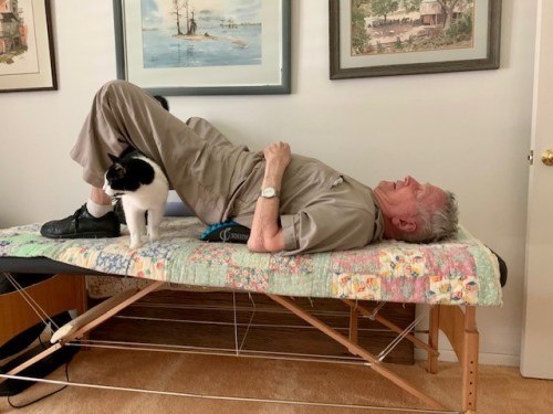 This morning I used the back stretcher again for 15 minutes unsupervised; it seems my “supervisor” has lost interest in my efforts. It’s possible those stretch sessions are helping me. I’ll continue to use it and hope the results are really making a difference.